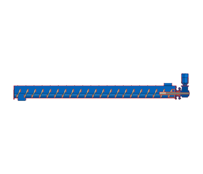 無(wú)軸螺旋輸送機(jī)的螺旋葉片采用不銹鋼材料通過(guò)專(zhuān)用模具的澆鑄而成,因而具有足夠的強(qiáng)度和剛度并且葉片表面光潔、又具有合適的旋轉(zhuǎn)速度,有效保證在輸送柵渣的過(guò)程中不會(huì)發(fā)生污物纏繞、阻塞現(xiàn)象,同時(shí)在輸送量較大的情況下螺旋葉片也不會(huì)變形。U型螺旋輸送槽內(nèi)耐磨襯里設(shè)置成半圓狀,其圓弧設(shè)置成與無(wú)軸螺旋體半徑相吻合以減少過(guò)量間隙來(lái)提高輸送效果;耐磨襯里采用耐磨性能高的尼龍材料制作,便于安裝及更換,使用壽命長(zhǎng)。U型螺旋槽采用不銹鋼板卷制而成,除進(jìn)料口敞開(kāi)外,其余部份沿螺旋槽加平蓋封閉,整個(gè)傳輸過(guò)程在一個(gè)密封的槽中進(jìn)行,降低噪聲,減少了異味的排出;在U型槽的底部設(shè)有排放口,并配套排水球閥。